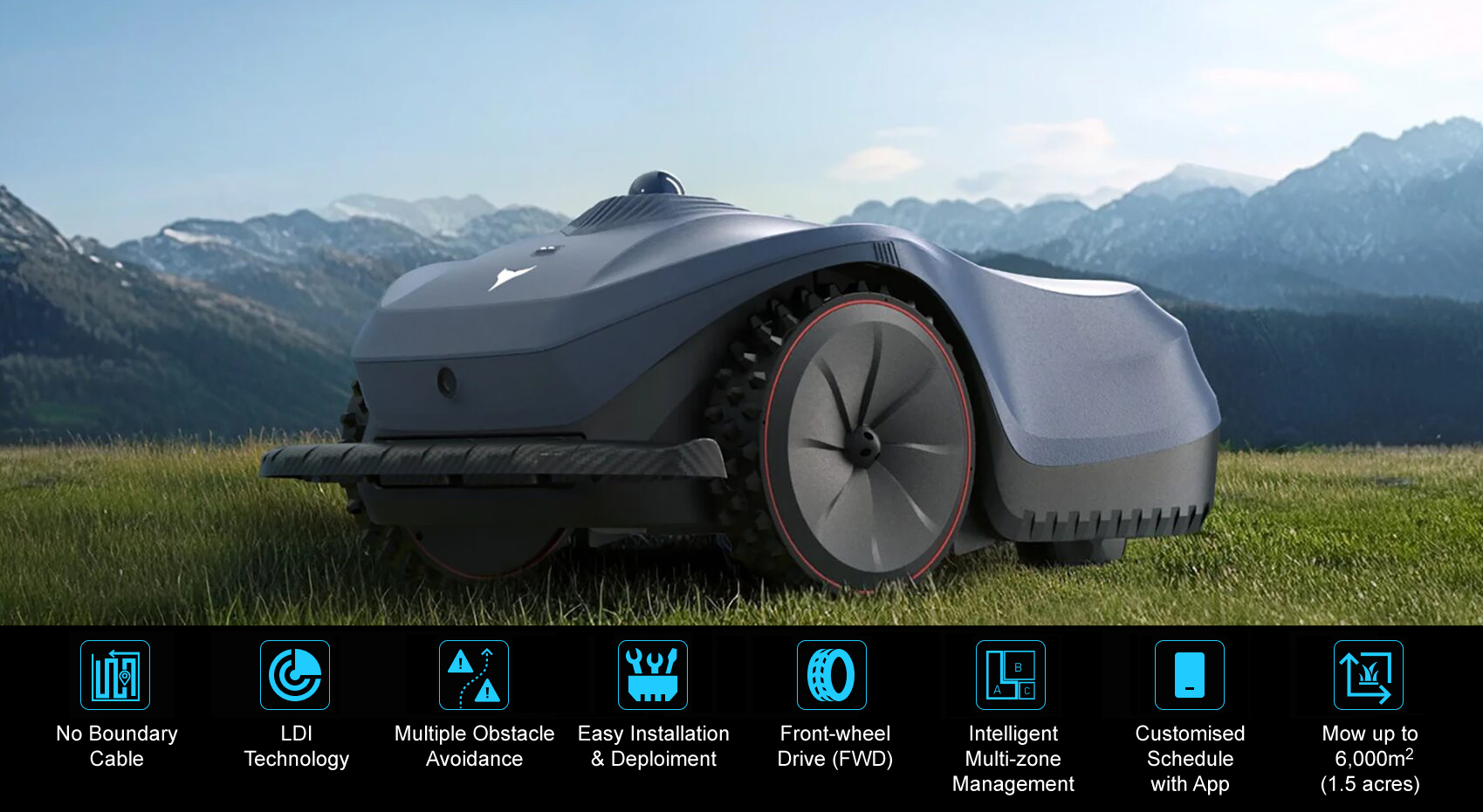 Our LDI navigation, intelligent obstacle avoidance, customisable features, and sleek design are all proprietarily designed and developed to revolutionise lawn maintenance.